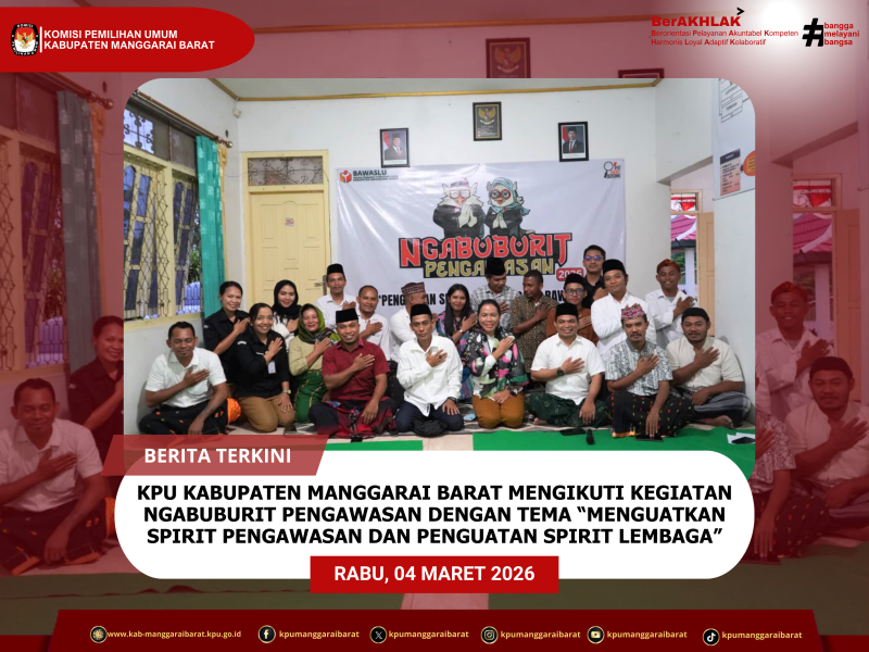Labuan Bajo, manggaraibarat.kpu.go.id - KPU Kabupaten Manggarai Barat mengikuti kegiatan Ngabuburit Pengawasan dengan tema “Menguatkan Spirit Pengawasan dan Penguatan Spirit Lembaga” yang diselenggarakan oleh Bawaslu Kabupaten Manggarai Barat pada Rabu (04/03) di Kantor Bawaslu Manggarai Barat. Kegiatan ini menjadi ruang refleksi bersama dalam memperkuat komitmen integritas dan pengawasan penyelenggaraan demokrasi, khususnya dalam momentum bulan suci Ramadan.