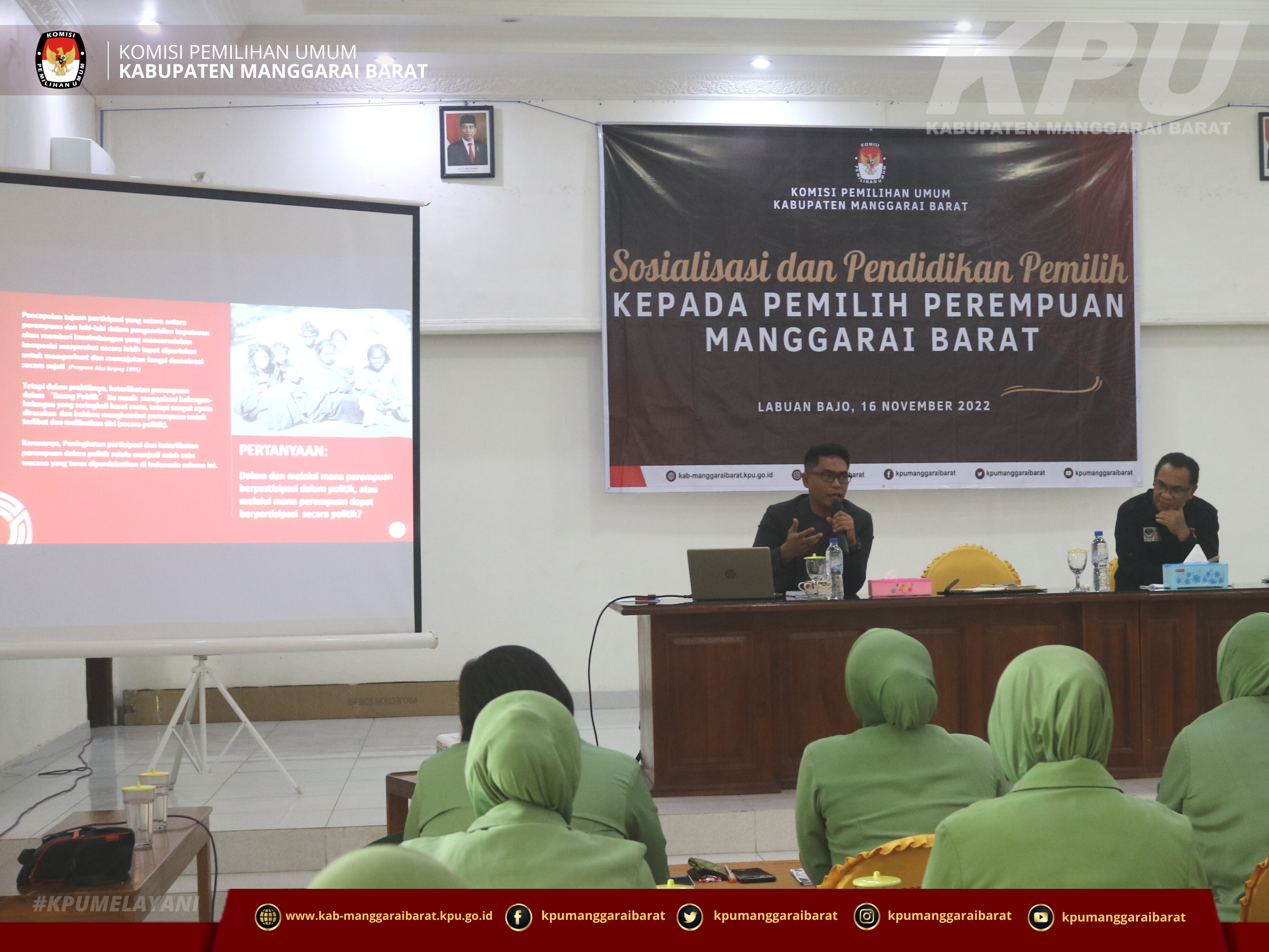 Labuan Bajo, manggaraibarat.kpu.go.id – Dalam upaya memaksimalkan peran dan partisipasi perempuan dalam Pemilu dan Pemilihan 2024 baik sebagai pemilih, penyelenggara maupun calon, KPU Kabupaten Manggarai Barat menggelar kegiatan sosialisasi dan pendidikan pemilih kepada Perwakilan Persatuan Istri Prajurit Kartika Chandra Kirana (Persit KCK) Labuan Bajo. Kegiatan yang menghadirkan nara sumber internal Robert V. Din dan Krispianus Bheda, dan Eduardus Ndundu dari Bawaslu dengan moderator Ponsianus Mato ini, dilaksanakan pada, Rabu (16/11/2022) di Aula Hotel Prundi, Labuan Bajo. Krispianus Bheda, ketua Divisi Sosdiklih Parmas dalam paparannya terkait “Pentingnya Peran Perempuan Dalam Pemilu dan Pemilihan 2024” menjelaskan bahwa peran dan keterlibatan perempuan di ruang publik sudah dijamin baik secara normatif maupun ideologis. Secara normatif sudah disiapkan melalui serangkaian peraturan perundang-undangan terakait afirmatif action dan secara ideologis dan Hak Asasi Manusia, perempuan mempunyai kedudukan yang sama dengan laki-laki. “Perempuan dan laki-laki mempunyai hak, kedudukan dan kesempatan yang sama untuk memperoleh untuk diakui sebagai pribadi di hadapan hukum, memiliki kedudukan dan hak yang sama untuk berserikat, berorganisasi, berpolitik, dan berbagai hak universal yang dilindungi oleh hukum” jelasnya. Karenanya ruang-ruang tersebut harus dimanfaatkan secara baik oleh Perempuan di tengah kepungan tantangan-tantangan arkaik seperti kostruksi budaya yang mendiskriminasi peran perempuan. Dan salah satu ruang yang memungkinkan sebagai pintu masuk adalah dalam dan melalui pemilu. “Dalam dan melalui pemilu atau pemilihan, perempuan tidak hanya dapat hadir sebagai pemilih untuk selanjutnya mengusung kepentingan perempuan dengan memilih calon perempuan, tetapi juga dapat menjadi penyelenggara pemilu dan/atau calon anggota parlemen” lanjutnya. Menurut Kris, kehadiran perempuan dalam parlemen secara institusional atau prosedural, dapat membuat parlemen lebih ramah kepada perempuan, misalnya melalui langkah-langkah yang dapat menunjukan kepedulian gender dan menghasilkan peraturan-peraturan yang lebih ramah kepada perempuan. “salah satu diantaranya adalah dengan kehadiran perempuan di parlemen dalam konteks Manggarai Barat hari ini, kebijakan-kebijakan normatif melalui peraturan daerah dapat diorientasikan pada kepentingan perempuan. Karenanya sekali lagi, pemilu dan pemilihan dapat dijadikan sarana mewujudkan representasi perempuan itu” jelasnya. Hal yang sama disampaikan Robertus V. Din dalam paparannya terkait “Gambaran Umum tentang Pemilu dan Pemilihan” menurutnya, konsep dan pemahaman dasar tentang pemilu harus diketahui oleh semua orang termasuk perempuan. Karena dalam pemilu dan pemilihan kita tidak hanya hadir sebagai pemilih pasif tetapi juga menjadi pemilih aktif, artinya yang mampu memberikan pencerdasan kepada publik lainnya. “Karena itu kami mengajak melalui ibu-ibu untuk tidak hanya mendaftar menjadi pemilih, tetapi juga turut menyebarluaskan berbagai informasi tentang pemilu dan pemilihan. Karena itu, selain meningkatkan kapasitas dan pengetahuan pribadi juga membantu publik mengetahui informasi dan pengetahuan tentang kepemiluan” jelasnya. Sementara dari sisi Pengawasan, Eduardus Ndundu, Anggota Bawaslu Manggarai Barat menjelaskan bahwa Perempuan adalah salah satu elemen publik ideal dalam memberikan pengawasan secara partisipatif. terhadap tahapan penyelenggaran pemilu atau pemilihan. “Karena tujuan pengawasan adalah Menegakkan integritas, kredibilitas penyelenggara, transparansi penyelenggaraan dan akuntabilitas hasil Pemilihan umum, Mewujudkan pemilihan yang demokratis dan Memastikan terselenggaranya pemilihan secara langsung, umum, bebas, rahasia, jujur, adil dan berkualitas serta dilaksanakannya peraturan perundang-undangan mengenai Pemilu secara menyeluruh” jelasnya. Turut hadir dalam kegiatan sosialisasi dan pendidikan pemilih ini adalah Sekretaris KPU Kabupaten Manggarai Barat, Bonafantura Yosman, Kasbag KUL, Benediktus Bagung dan segenap staff KPU Kabupaten Manggarai Barat. (Humas KPU Manggarai Barat)