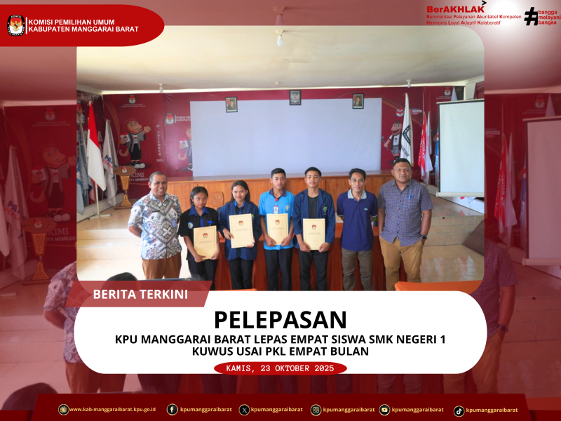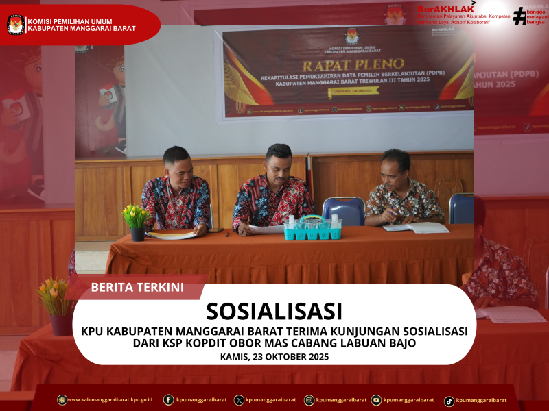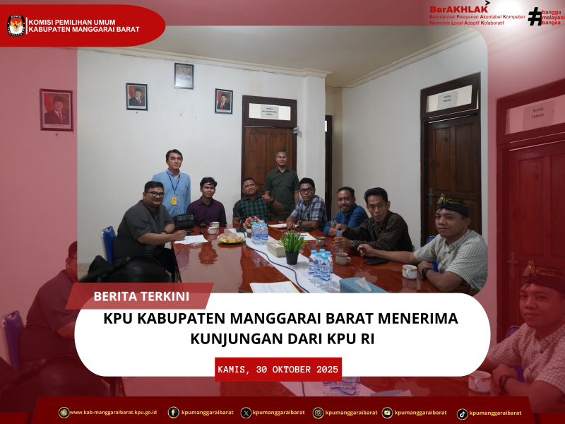 LabuanBajo,manggaraibarat.kpu.go.id - Komisi Pemilihan Umum Kabupaten Manggarai Barat menerima kunjungan dari tim KPU Republik Indonesia di kantor KPU Kabupaten Manggarai Barat pada Kamis, 30 Oktober 2025. Kunjungan tersebut dilakukan dalam rangka pengambilan sampel dan pengumpulan data lapangan terkait penulisan buku tentang Logistik Pemilu, yang tengah disusun oleh KPU RI. Tim dari KPU RI diterima langsung oleh Ketua KPU Kabupaten Manggarai Barat, Ferdiano Sutarto Parman, didampingi oleh anggota KPU, serta para Kasubag di lingkungan Sekretariat KPU Kabupaten Manggarai Barat dan dari KPU Provinsi NTT. Dalam kesempatan tersebut, tim KPU RI melakukan wawancara dan diskusi mendalam mengenai proses pengelolaan logistik pada pelaksanaan Pemilu dan Pilkada di Kabupaten Manggarai Barat, mulai dari tahap perencanaan, pengadaan, distribusi, hingga penyimpanan logistik pemilu. Ketua KPU Kabupaten Manggarai Barat menyampaikan apresiasi dan dukungan terhadap kegiatan ini. “Kami menyambut baik kunjungan dari KPU RI. Semoga hasil kajian ini dapat menjadi bahan evaluasi dan pembelajaran nasional dalam mewujudkan tata kelola logistik pemilu yang semakin efektif dan akuntabel,” ujarnya Selama kunjungan, tim KPU RI melakukan diskusi dan wawancara dengan jajaran sekretariat serta Ketua dan Anggota KPU Kabupaten Manggarai Barat terkait pelaksanaan tahapan logistik, serta meninjau dokumen dan arsip kegiatan logistik pada Pemilu dan Pilkada sebelumnya. Kegiatan berlangsung dalam suasana akrab dan produktif. (AS/Humas KPU Manggarai Barat)