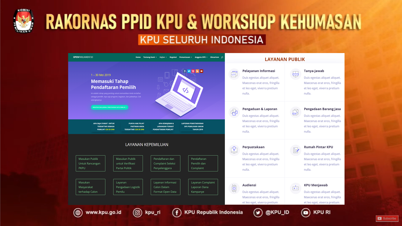 Demikian disampaikan Hanafi, Direktur Indonesia Parliamentary Center pada kesempatan pendalaman materi terkait “Optimalisasi Website PPID KPU dan Panduan Layanan Informasi Khusus Pemilu dan Pemilihan” Sessi Ketiga Rapat Koordinasi Nasional PPID dan Workshop Kehumasan KPU pada, Kamis (28/10/2021).
